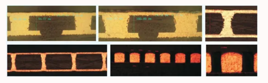 - 减小独立线的相应铜厚度差对于超密集BGA也有非常优越的镀铜表现。