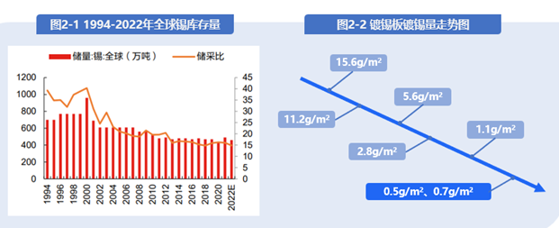 随着全球锡资源减少,国际锡价升高,镀锡板朝向低锡量方向开展。